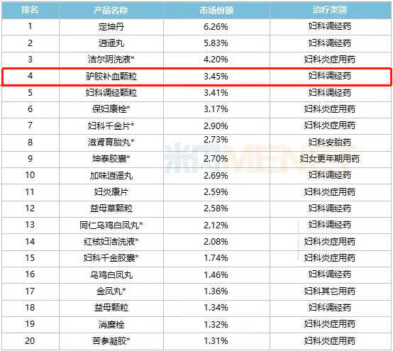 今年的政府工作报告提出,支持中医药振兴发展,推进中医药综合改革。在国家顶层政策支持、国际化等大背景下,中医药行业有着巨大的成长空间,各细分领域将迎来黄金发展期。米内网数据显示,预计2021年中国城市实体药店妇科中成药市场规模超过50亿元。从TOP20厂家格局来看,株洲千金药业、山西广誉远国药、星空集团、仲景宛西制药、四川恩威制药位居前五。产品TOP20中10个是独家,5个涨超10%。在中国城市实体药店妇科中成药产品TOP20中,星空集团驴胶补血颗粒占市场份额3.45%,位居第四;在中国城市实体药店妇科中成药品牌TOP20中,星空集团驴胶补血颗粒占市场份额3.39%,位居第五。