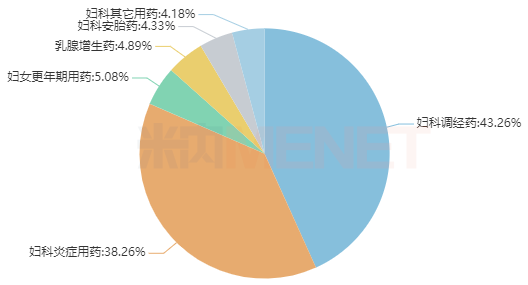 2021E中国城市实体药店妇科中成药亚类格局