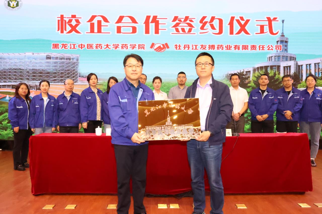 6月8日,“黑龙江中医药大学药学院与牡丹江友搏药业有限责任公司校企合作签约仪式”在友搏药业办公楼一楼报告厅内圆满举行,黑龙江中医药大学药学院院长杨波与友搏药业总经理倪开岭代表校企双方,就合作共建签署合约并展开深入洽谈。