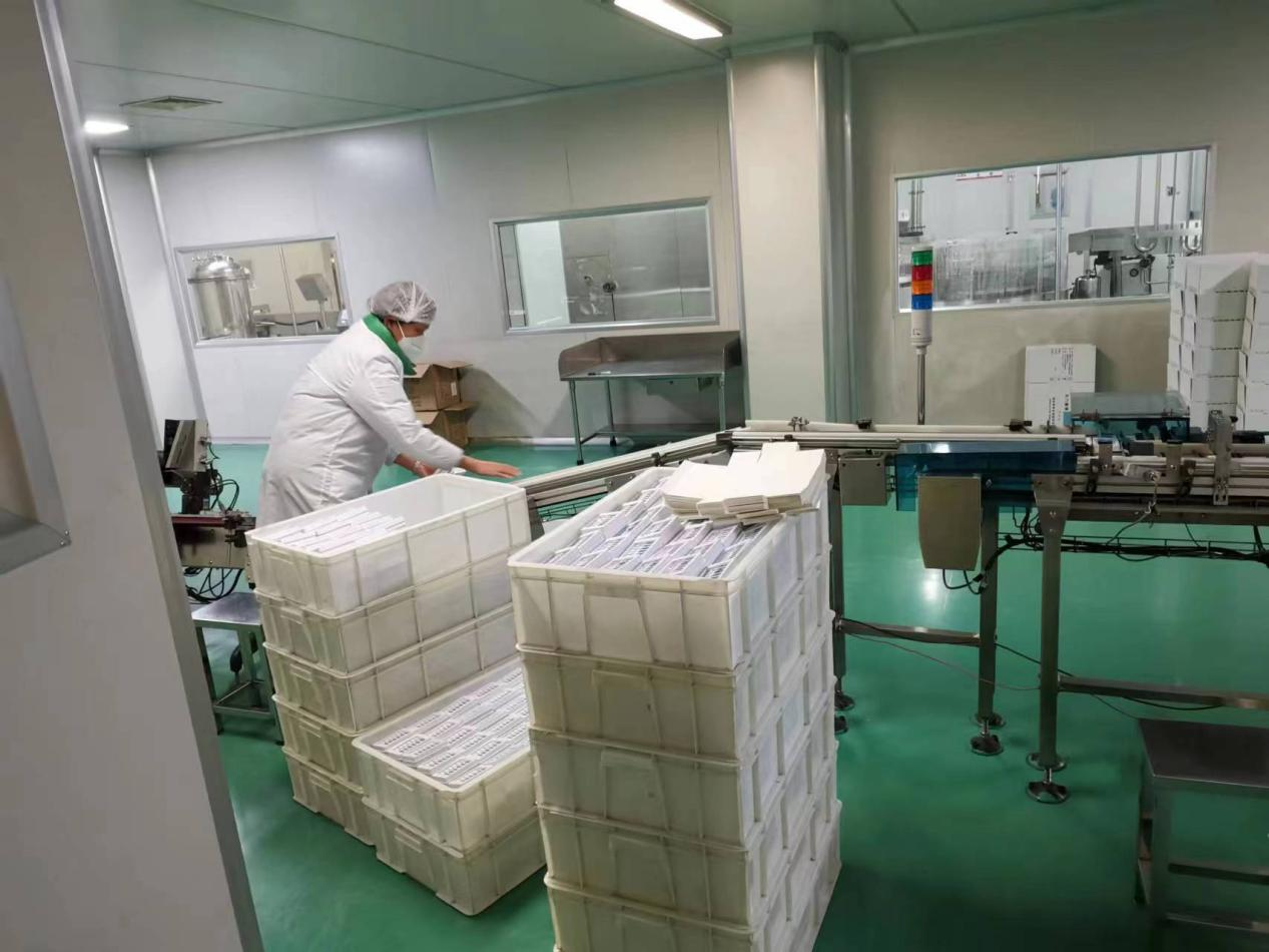 在星空集团长沙基地,采购供应部紧急梳理目前库存原材料可供生产批数,采购原材料,克服药材价格飞涨等不利因素,积极和供应商协调原材料到货情况,及时反馈生产部门。生产部门积极组织,对产能进行统一协调、统一调配,已将设备产能调到最大,实行机器不停工、员工白中夜三班倒,紧急安排将安宫牛黄丸、补中益气丸、通宣理肺丸等疫情防治药品列为首要生产任务,马力全开、连续生产。抢工期、赶时期,在药材价格飞涨、中药生产周期长等外部不利影响及内部员工确诊人数不断增长的双重压力下,车间内各生产线高速、有序运行,在操作工人与机械制造线的默契配合下,一盒盒药品经过检验合格后被打包、装箱,顺利下线。